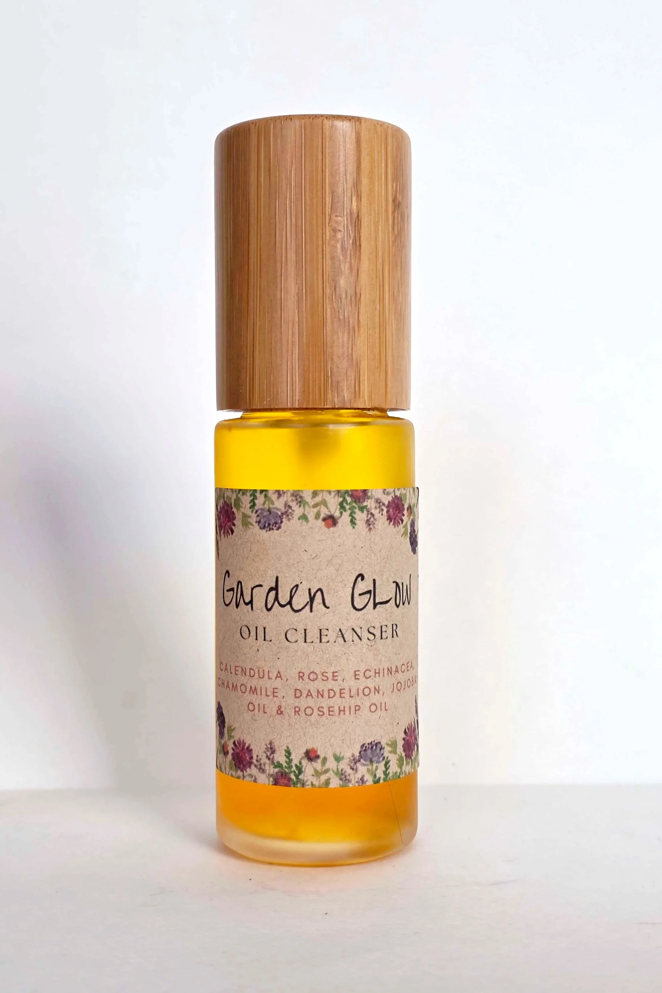 Garden Glow is a nourishing oil cleanser, crafted with a garden fresh botanicals to bring your skin back to balance. Rose hydrates and softens, echinacea supports resilience, calendula calms irritation, chamomile soothes stress, and dandelion root gently detoxifies. Together with jojoba and rosehip oils, this blend melts away makeup, impurities, and the stress of the day without stripping your skin. As part of your morning or evening ritual, massage into dry skin and rinse, letting the botanicals restore softness, clarity, and a radiant, healthy glow.